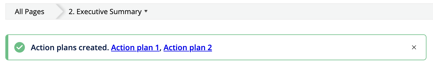 Once the process is complete, to open the action plan page click the link in the confirmation message.