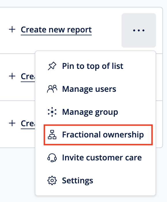 From the main Spotlight screen, click the three dots next to the organisation name, then click Fractional Ownership.